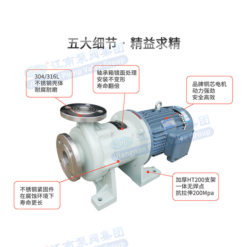 - JMP不銹鋼磁力泵全密封、無(wú)泄漏、清潔環(huán)保、運(yùn)行靜音低振,是輸送易燃、易爆、腐蝕、貴重液體的優(yōu)選用泵。因節(jié)能環(huán)保、可靠安全,并替代進(jìn)口為用戶節(jié)約大量成本。廣泛應(yīng)用于化工、制堿、石油、醫(yī)藥、衛(wèi)生、農(nóng)藥、造紙、染料、污水處理等領(lǐng)域。