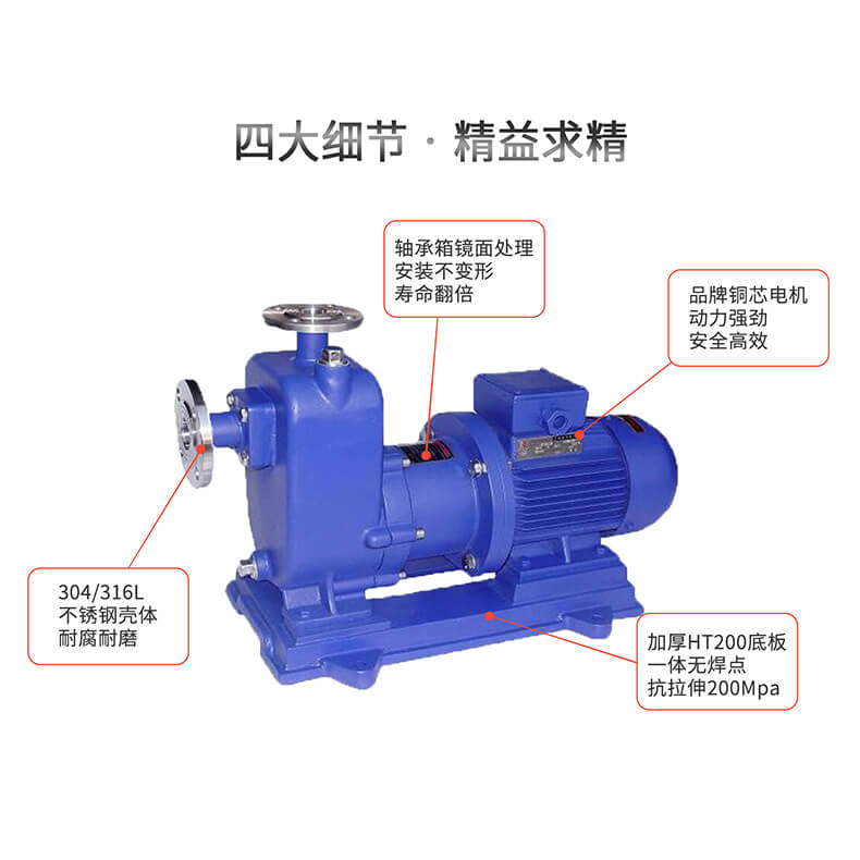 - CQZ系列自吸式磁力驅動泵簡稱為“CQZ自吸磁力泵”,是自吸泵與磁力泵的很好組合。采用磁力耦合傳動.不存在動密封點。因此即能防止了一般軸傳動式離心泵軸封外跑、冒、滴、漏的現(xiàn)象。又具有良好的自吸功能。其過流部件采用耐腐蝕不銹鋼,高純度工業(yè)陶瓷及填充四氟制成;具有良好的耐腐性。