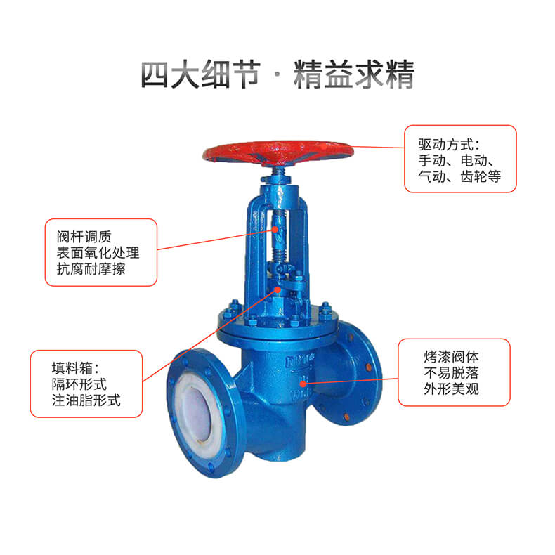 - J41F-16襯氟截止閥耐壓高、可靠性強,廣泛用于輸送各種強腐性介質(zhì)的管路上。